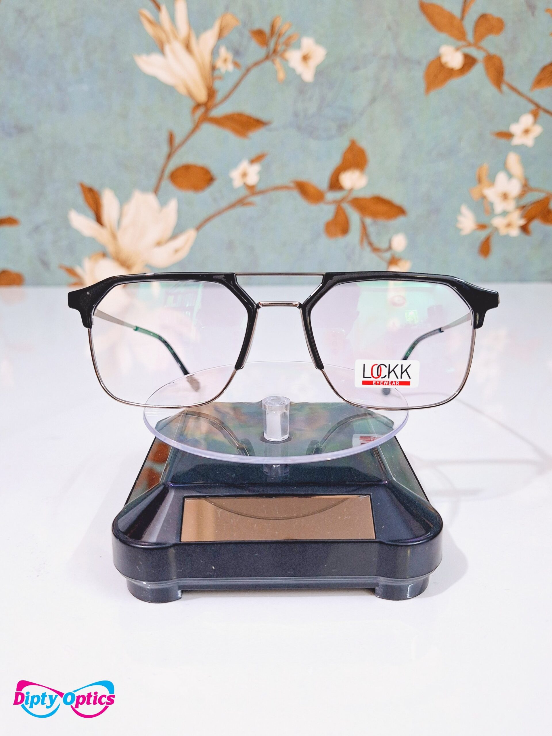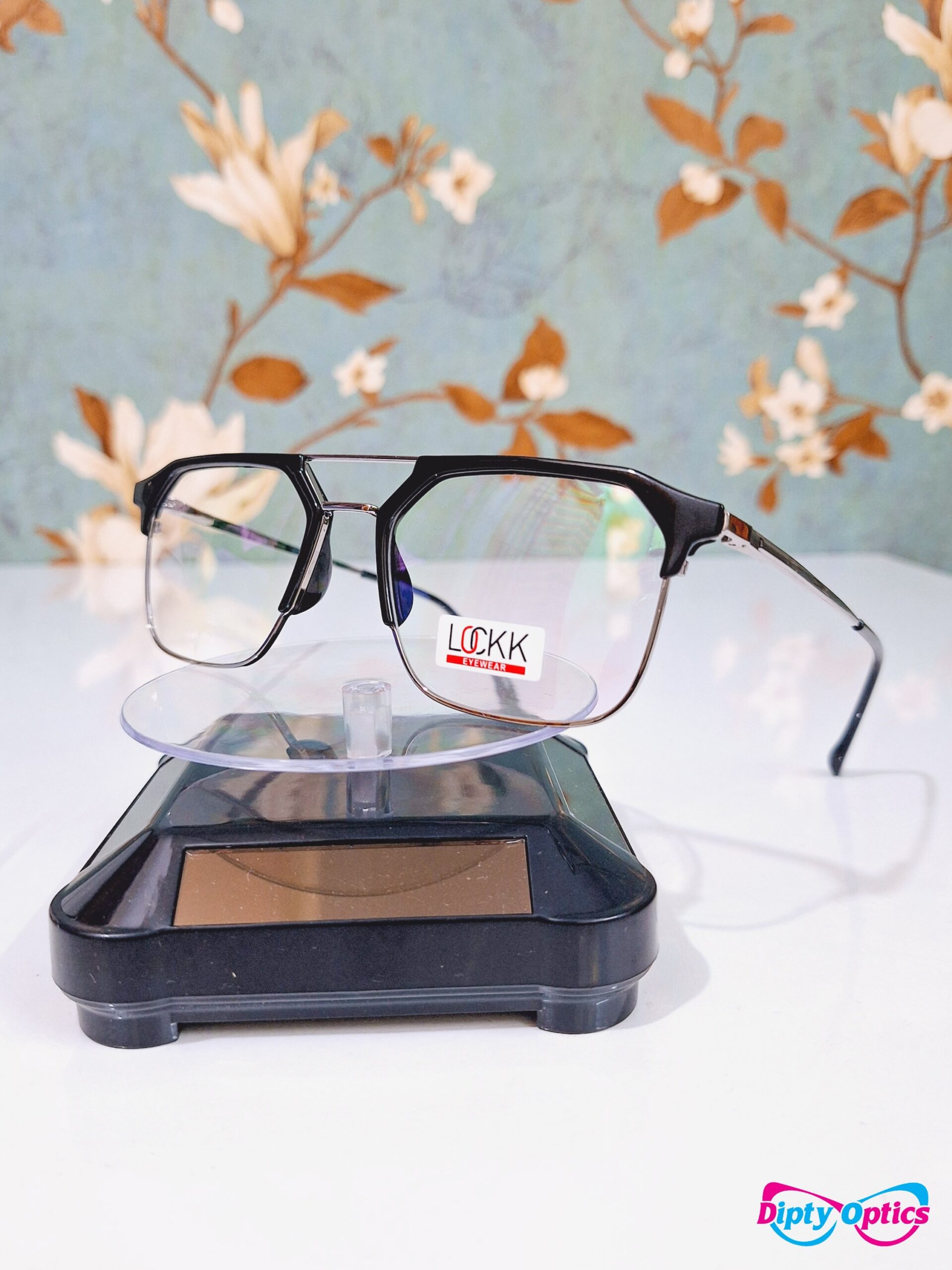 A bold and modern eyeglass design featuring a black geometric frame with a distinctive double bridge. The oversized lenses create a contemporary look, while the angular styling adds a touch of sophistication. Perfect for those seeking a statement accessory that blends fashion with functionality.